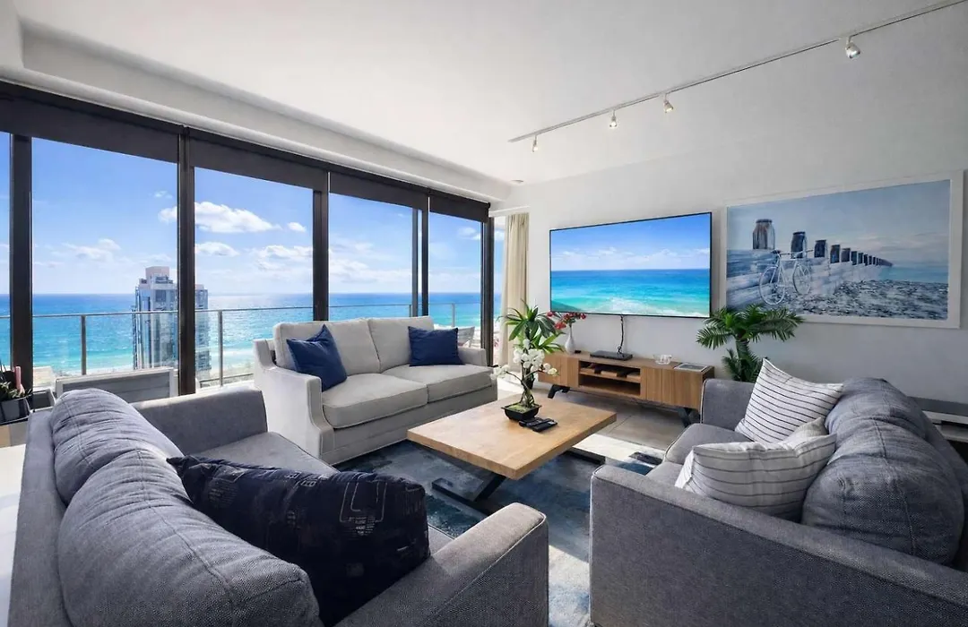 Il 2Br Ocean View Apt Heated Pool Spa include una cucina completamente attrezzata che offre una lavastoviglie e un forno. L'aeroporto di Gold Coast è a 24 minuti d'auto, mentre la fermata dell'autobus Surf Pde at Broadbeach Mall si trova abbastanza vicino a quest'appartamento.